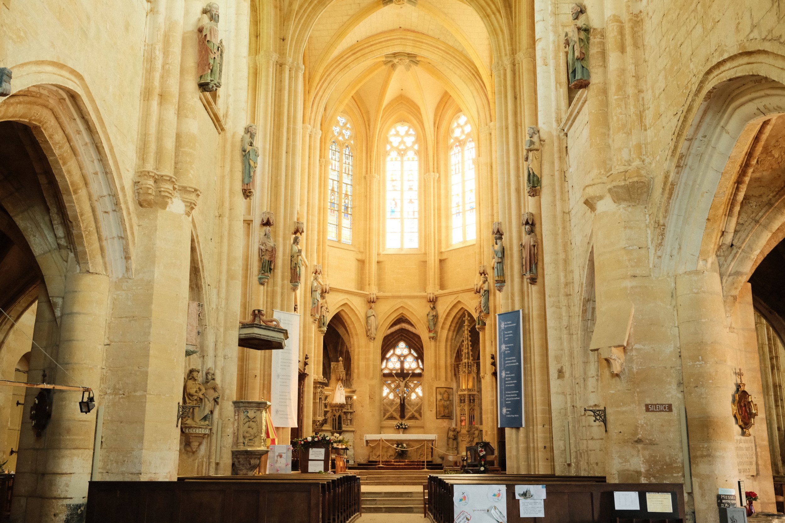 Le parcours offre de superbes paysages et débute à Avioth, un petit village du nord de la Meuse connu pour sa basilique Notre-Dame. Ce monument impressionnant, surnommé la “cathédrale des champs”, a été construit au XIVe siècle dans un style gothique remarquable. Il est né d’un important pèlerinage autour d’une statue miraculeuse de la Vierge, découverte au XIIe siècle. À côté de l’église se trouve la Recevresse, une structure unique en pierre servant autrefois à recueillir les offrandes des pèlerins.